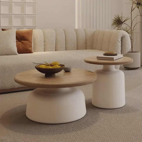 Modern Cream Solid Wood Coffee Table – Minimalist Circular Edge Table for High-End Living Room & Home Décor
