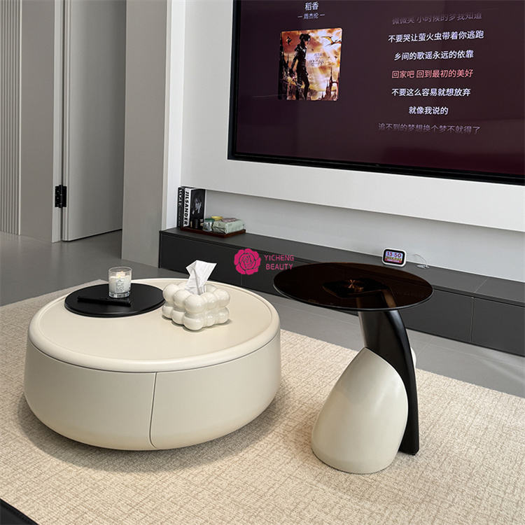 Modern French Cream Coffee Table – High-End Minimalist Designer Tea Table for Living Room & Small Apartment