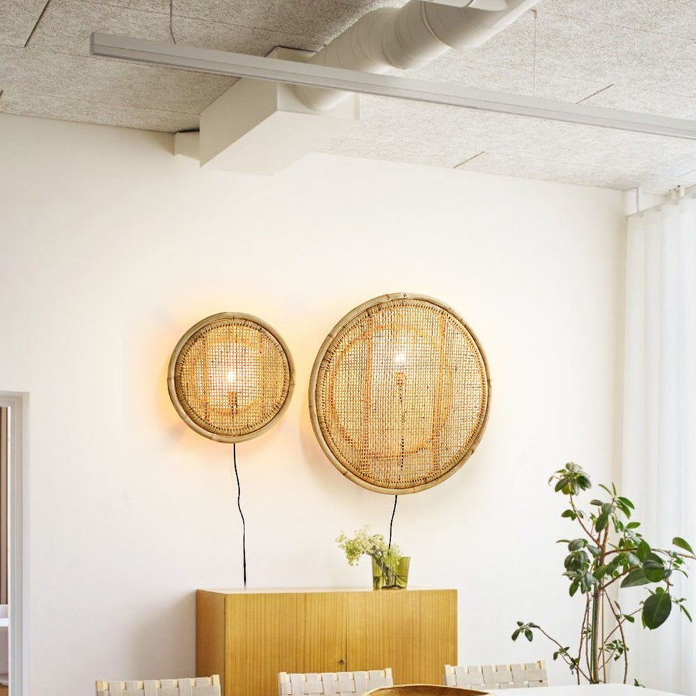 Round Rattan Wall Lamp – Handcrafted Lampshade for Home Décor & Ambient Lighting