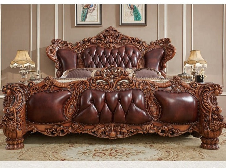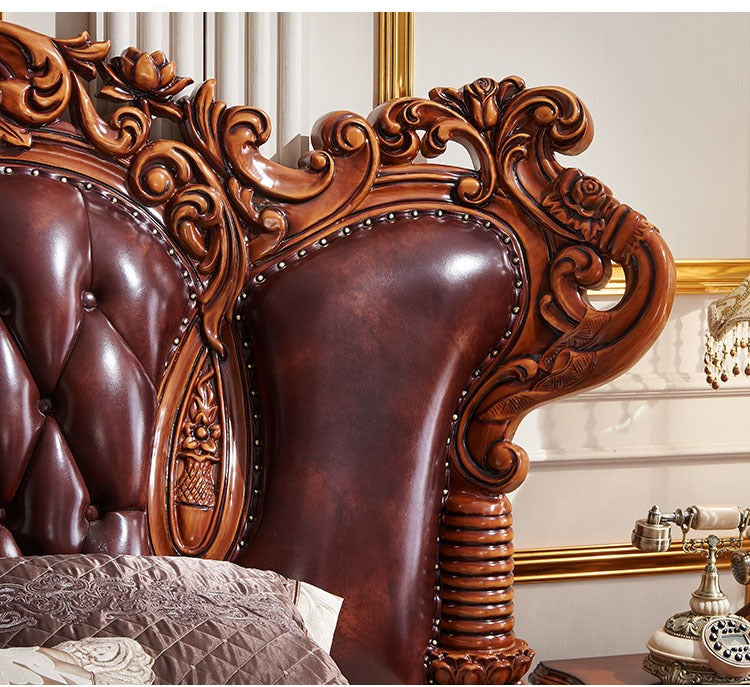 Amerikanisches Schlafzimmermöbel-Set, luxuriöses Kingsize-Bett aus Holz, klassisches Bett aus echtem Leder