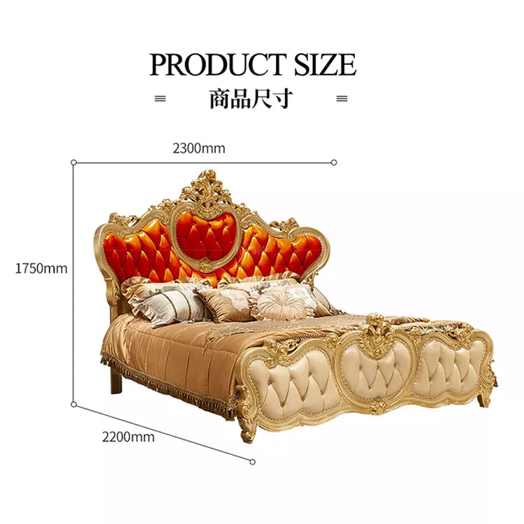 Aristokrat Bett Italienisches Leder Luxus Champagner Handgeschnitzt