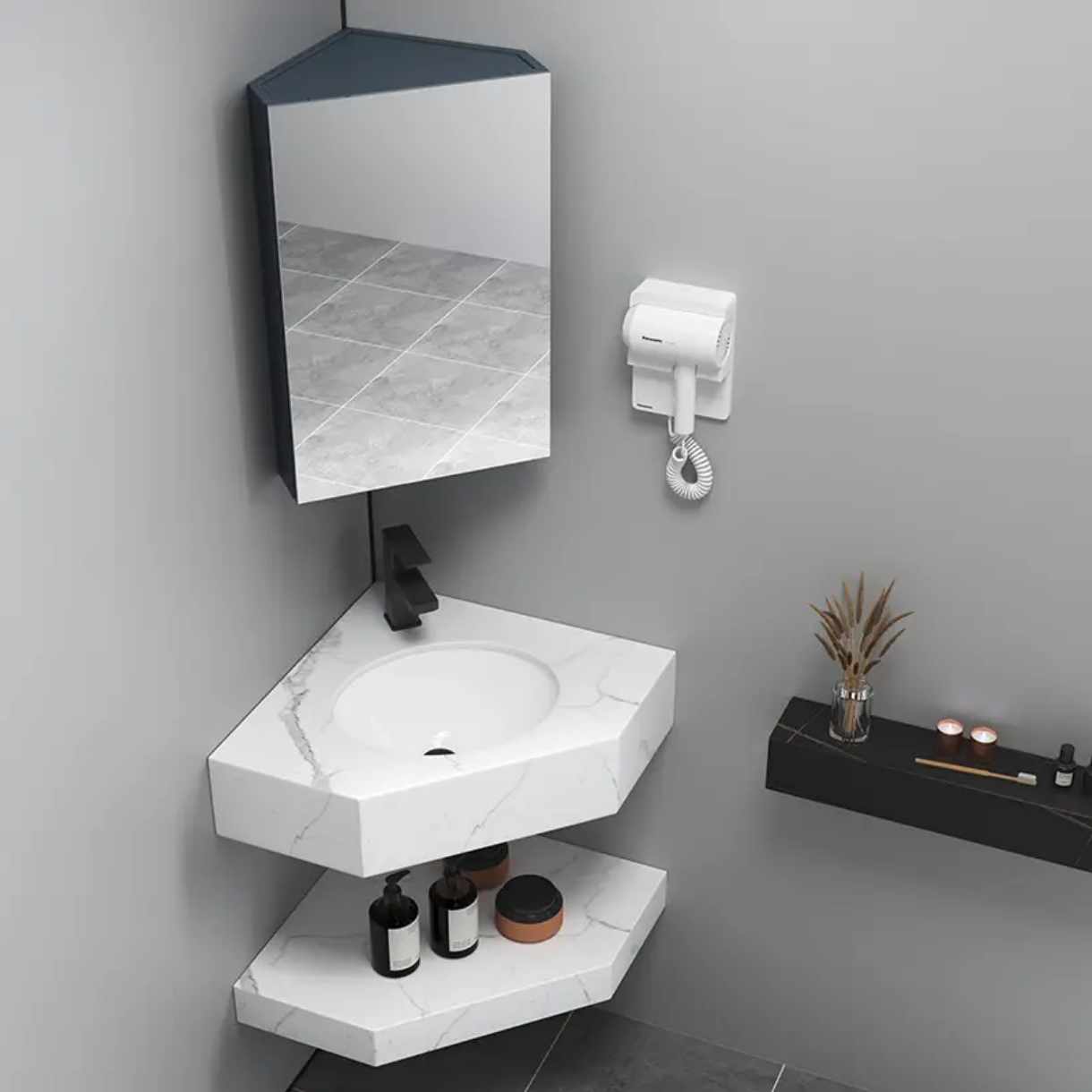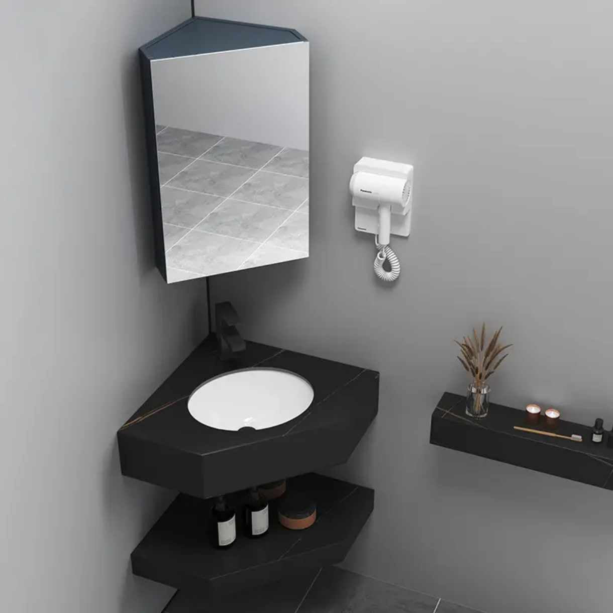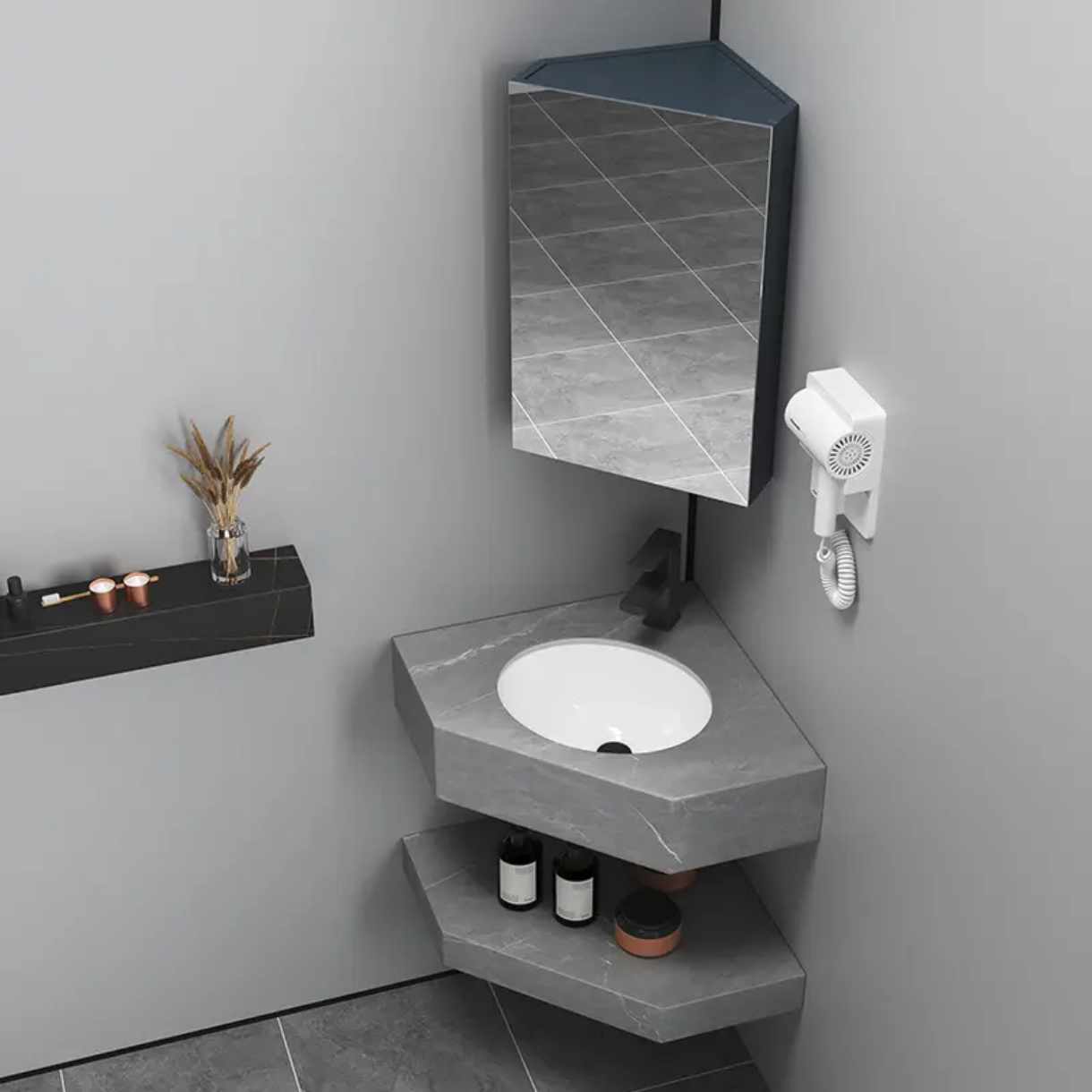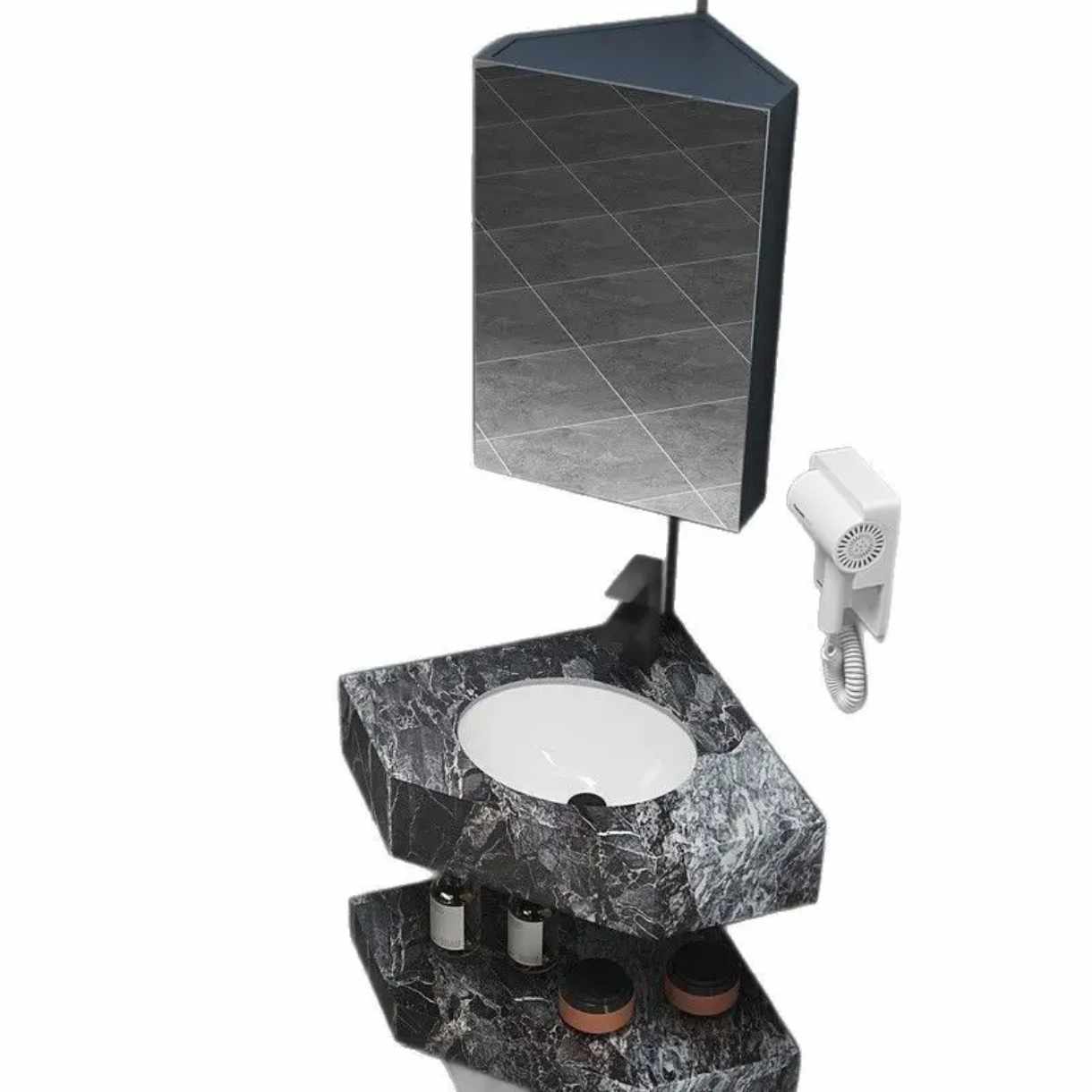 Materialien: Schiefer, Marmorstein Inklusive: Eingebautes Spülbecken und Schieferarbeitsplatte (oben und unten). Nicht im Lieferumfang enthalten: Wasserhahn und Spiegel Lesen Sie mehr