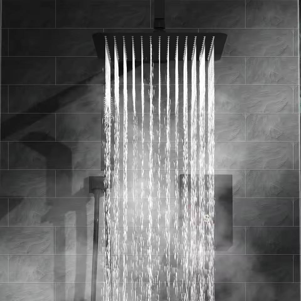 12 Inches Matte Black Ceiling Shower Set System Bathroom Luxury Rain Mixer Shower Combo Set Ceiling Mounted Rainfall
