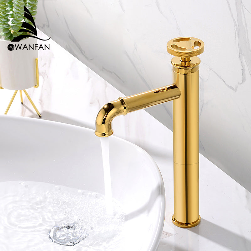 Aufsatzarmatur für Kalt- und Warmwasser, goldfarben, Einloch-Waschtischarmatur im Retro-Industrie-Stil aus Messing