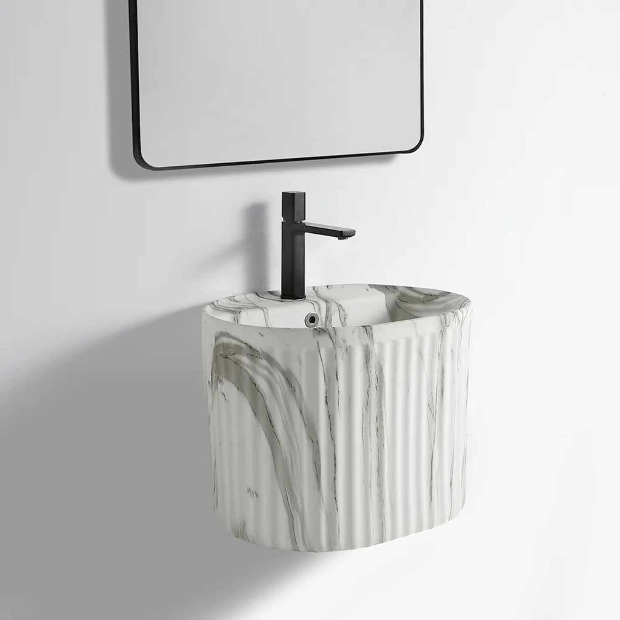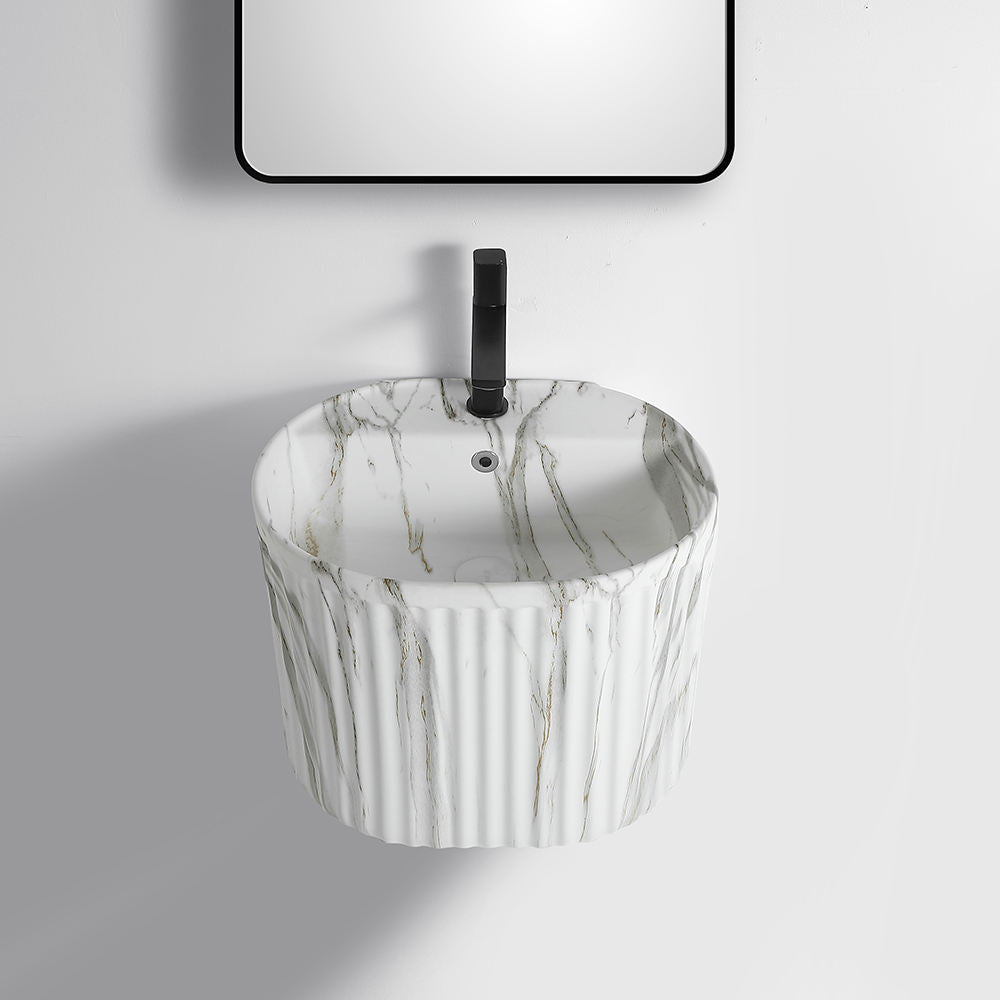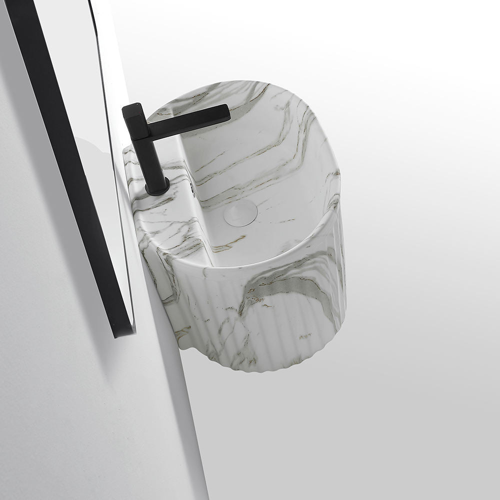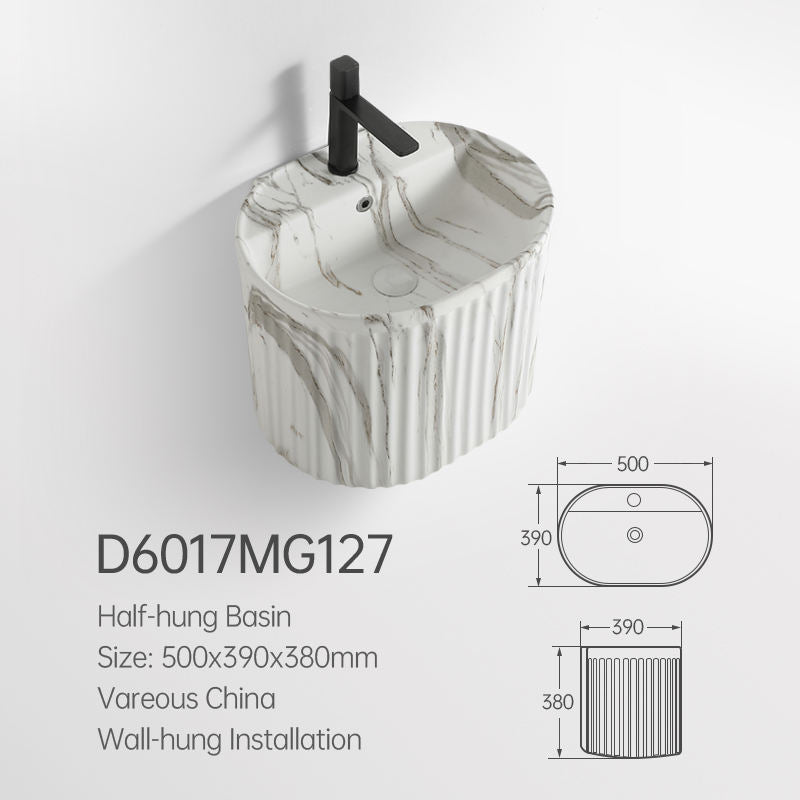Keramikwaschbecken im grauen Marmor-Design – Wandhängendes Halbsäulenwaschbecken