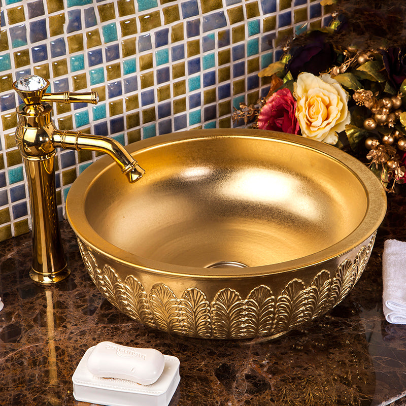 Oberfläche des Keramikkunstbeckens Handgefertigt, geschnitzt, glasiert, mit Abziehbildern verziert, galvanisiert usw. Normale Größe eines Keramikbeckens 410 x 410 x 130... Lesen Sie mehr