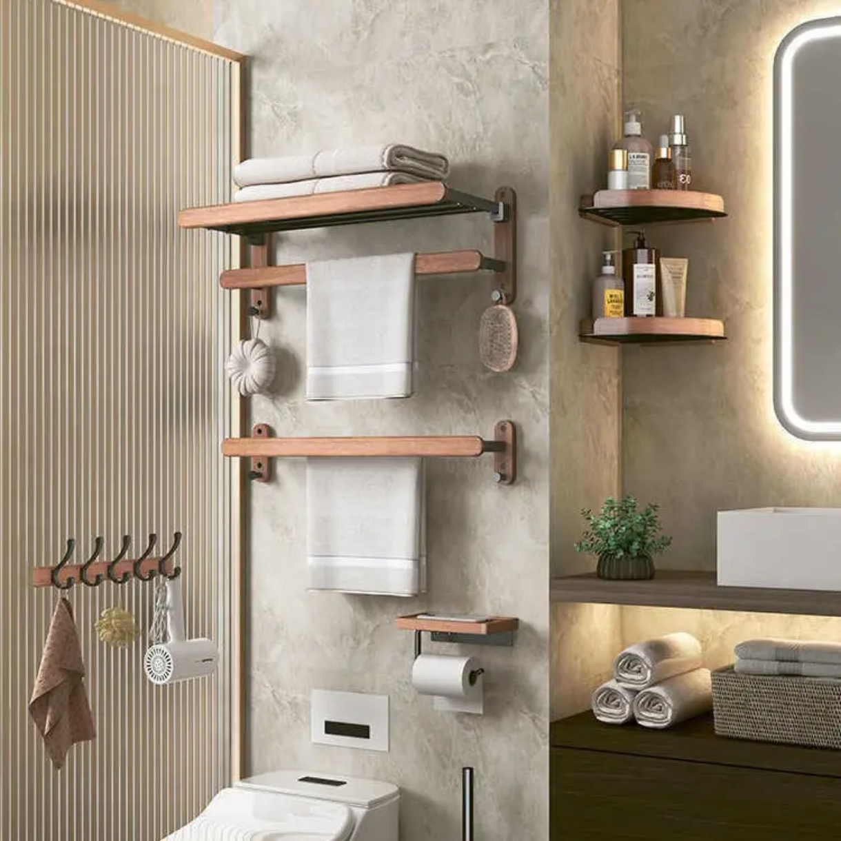 Importiertes Walnussholz-Set, wasserdichte Badezimmeraccessoires, Handtuchhalter, Taschentuchhalter, Aluminium-Badezimmerbeschläge