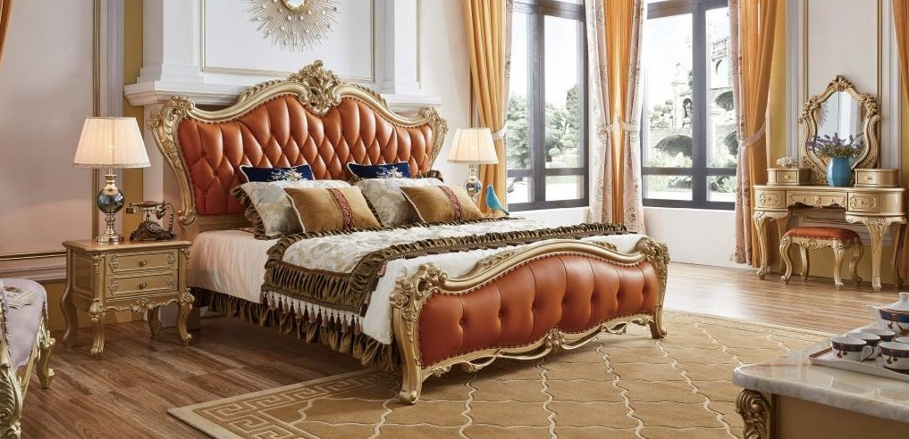 Luxuriöses Kingsize-Bett im europäischen Stil, königliche Möbel, Hotel-Schlafzimmer-Sets in Antikgold