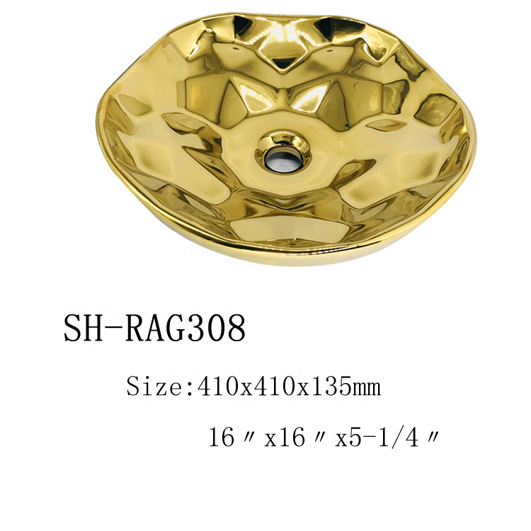 Luxuriöse Keramik-Tischplatte mit goldfarbenem Blumendekor, kunstvollem Waschbecken für Badezimmer