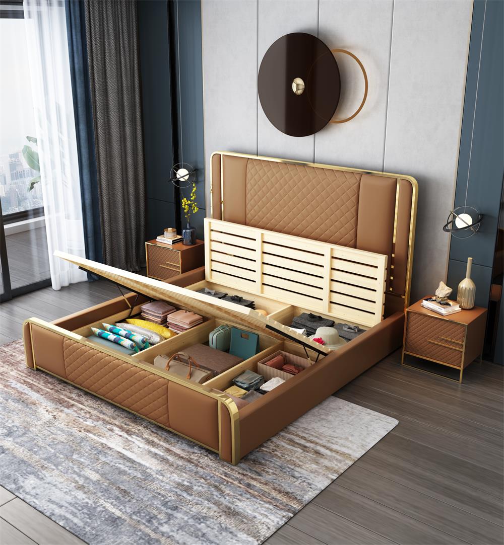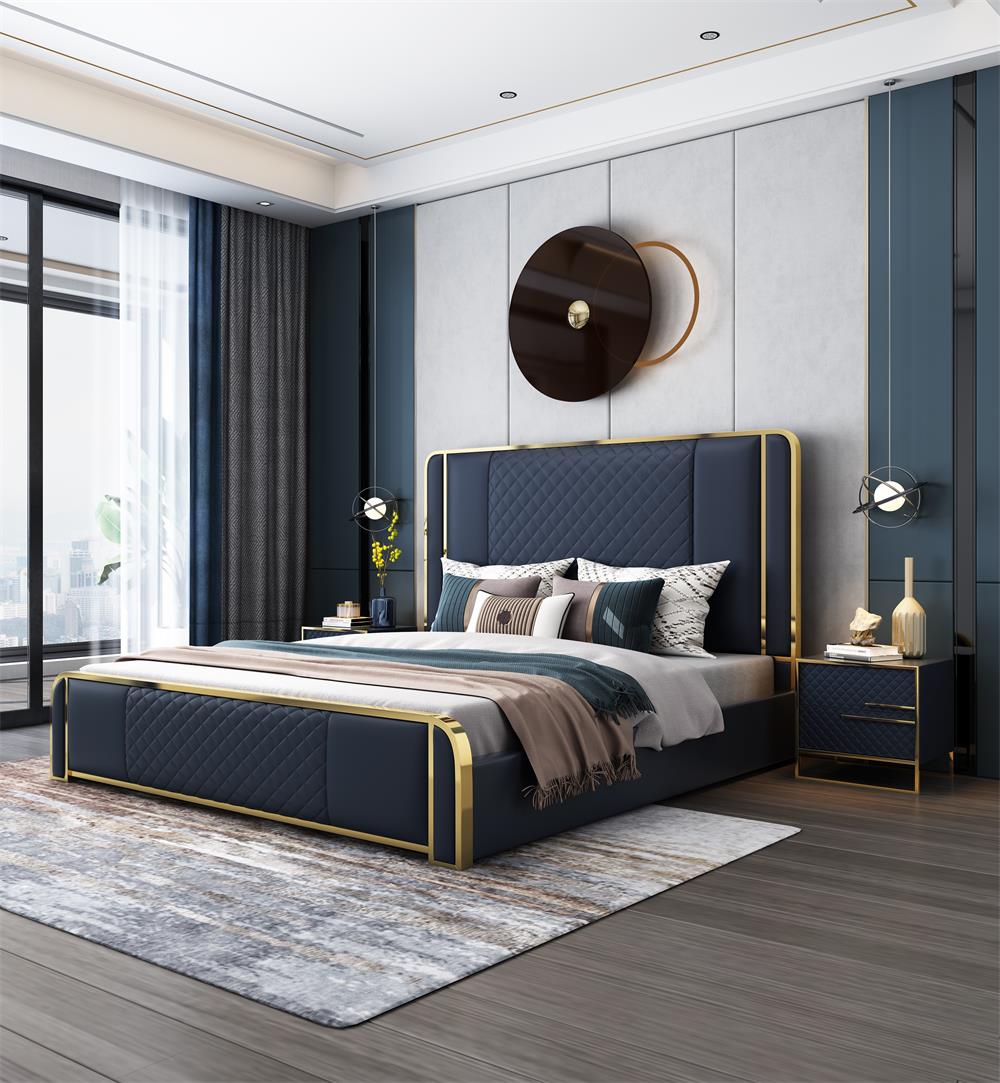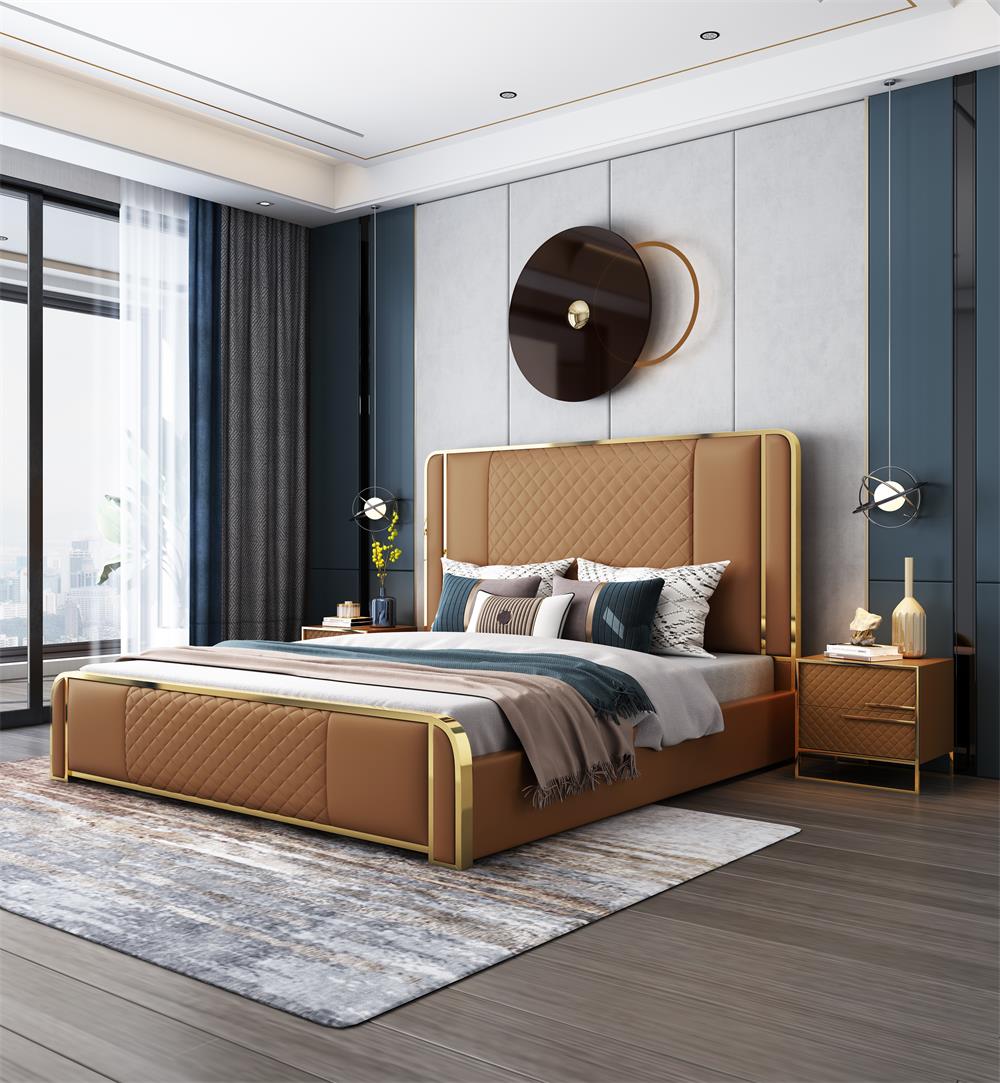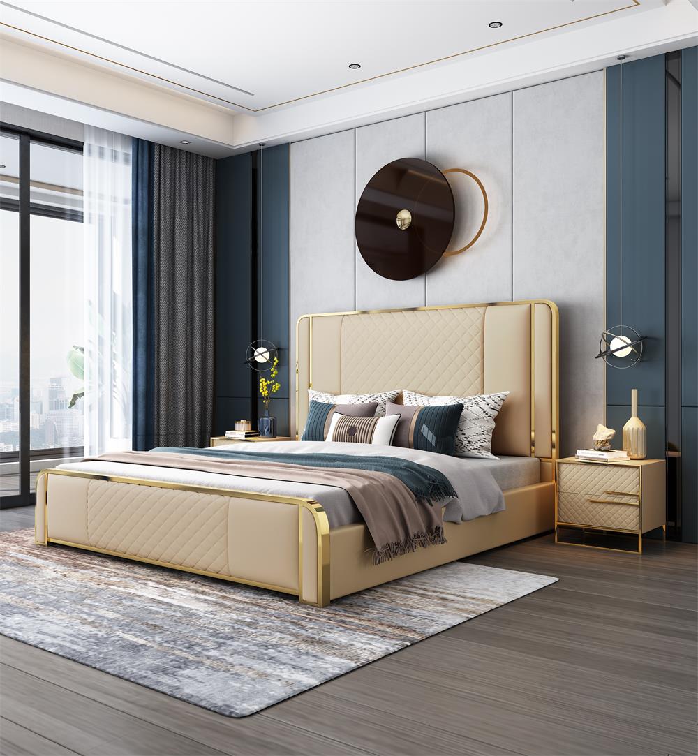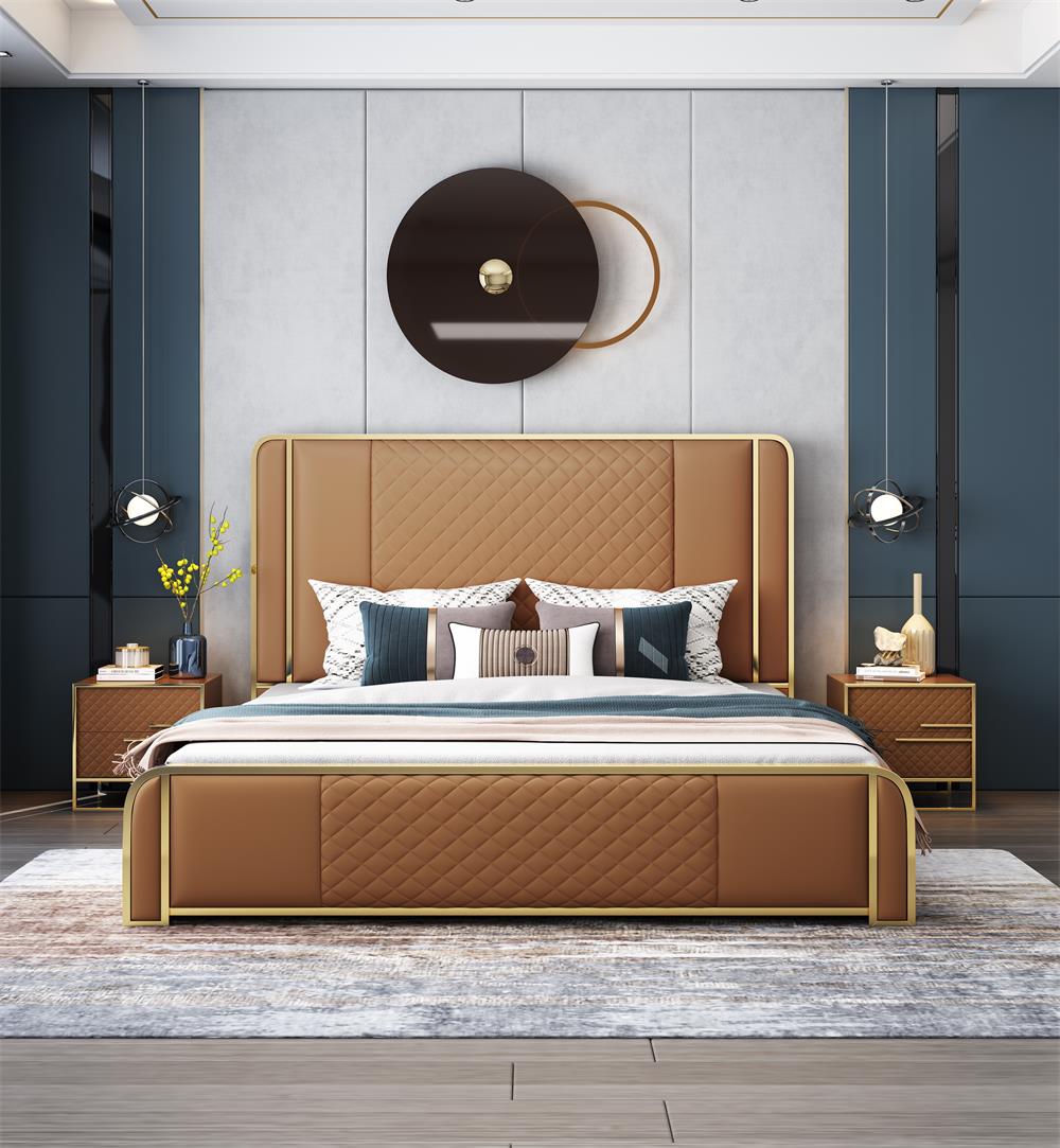 Luxuriöses Design: Goldenes Kingsize-Bett. Kaufen Sie Luxusmöbel: Kingsize-Bett im europäischen Klassik-Stil, königlich, luxuriös, goldenes Holzbett für Ihr Schlafzimmer.