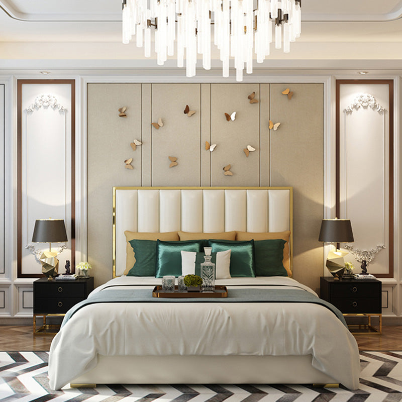 Luxuriöses, modernes Schlafzimmer-Set mit Massivholzrahmen (Queen-Size) und Lederbezug