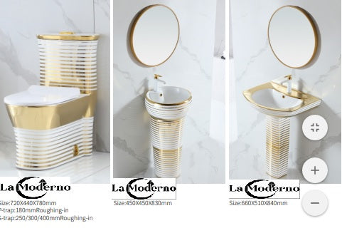 Luxuriöses WC-Set mit weißen und goldenen Streifen, Badezimmerzubehör, wahlweise mit freistehendem Waschbecken oder Aufsatzwaschbecken