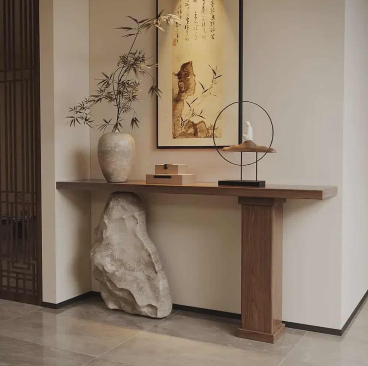 Moderner Konsolentisch aus regenwaldgrünem Marmor – Luxuriöser Hohlstein