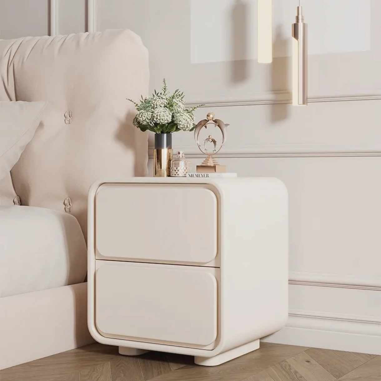 Moderner, schlichter Nachttisch – Hochwertiges Schlafzimmermöbel mit Eckablage