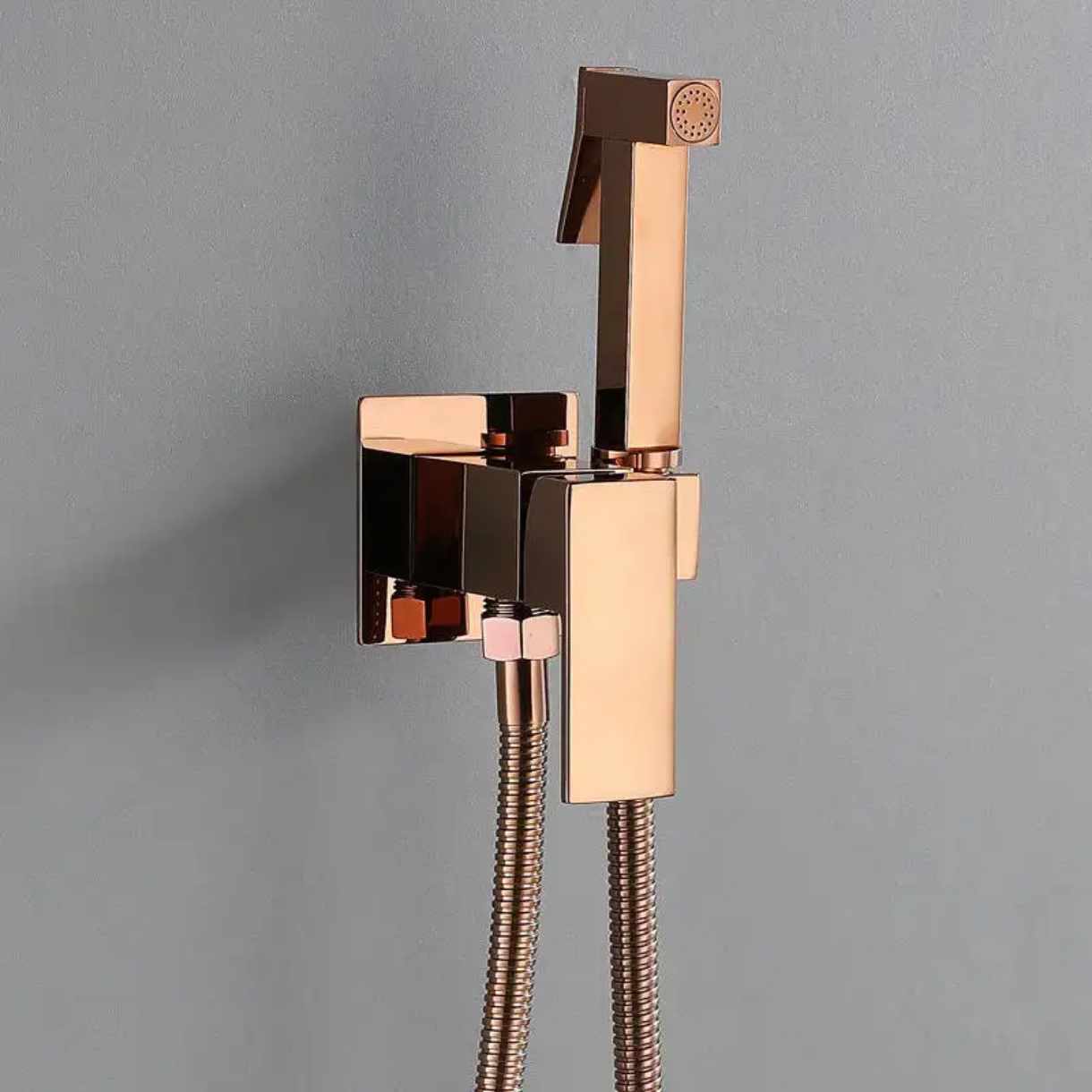 Quadratisches, handliches Bidet-Set aus roségoldenem Messing mit Warm- und Kaltwasserfunktion und Duschventil
