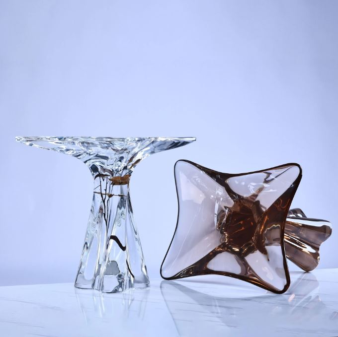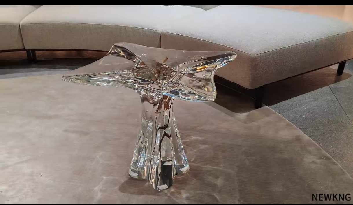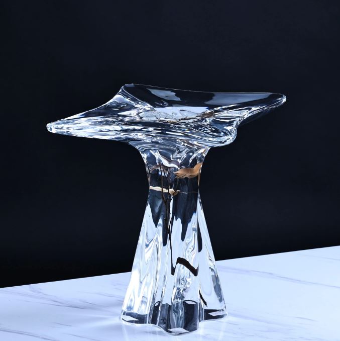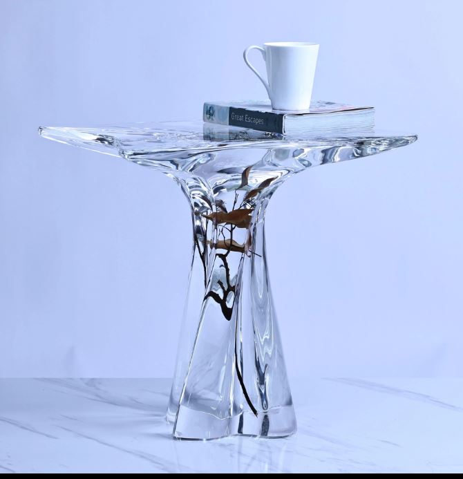 Hochwertiger, transparenter Beistelltisch mit integriertem Pflanzeneinsatz aus Acrylglas – luxuriöses Deko-Möbelstück