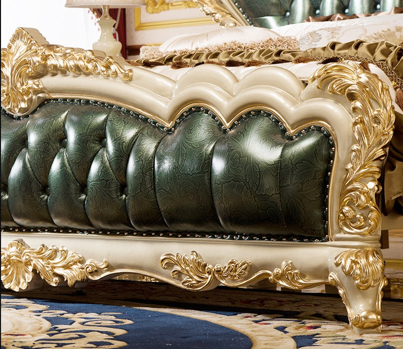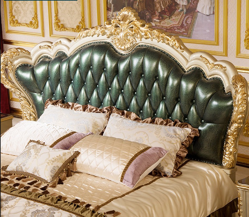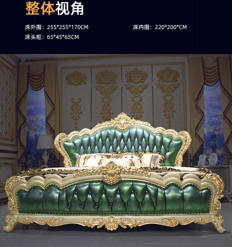 Europäisches Betten-Set, Schlafzimmermöbel, Kingsize-Bett aus Holz, olivgrünes Rindsleder