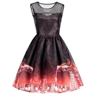 Produktbeschreibung: Ein schickes Kleid für Weihnachten! Mit Printmuster, einem gepunkteten Mesh-Einsatz für einen Hauch von Sexyness, ausgestellter Silhouette und verdecktem... Lesen Sie mehr