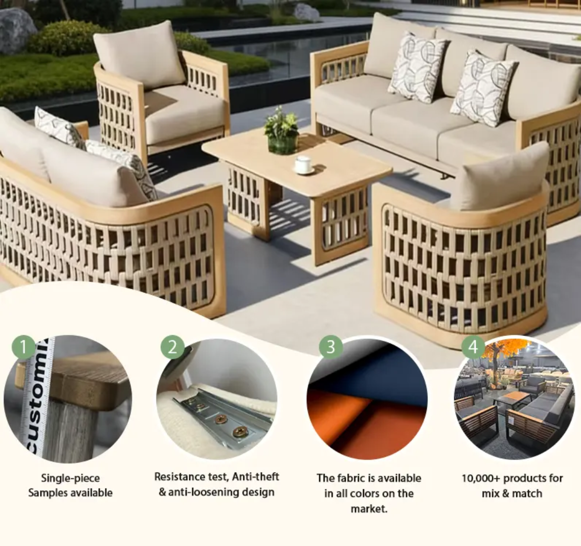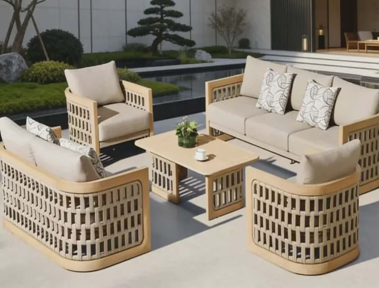 Zen Garden Luxury Sofa Set with Grid Weave Design