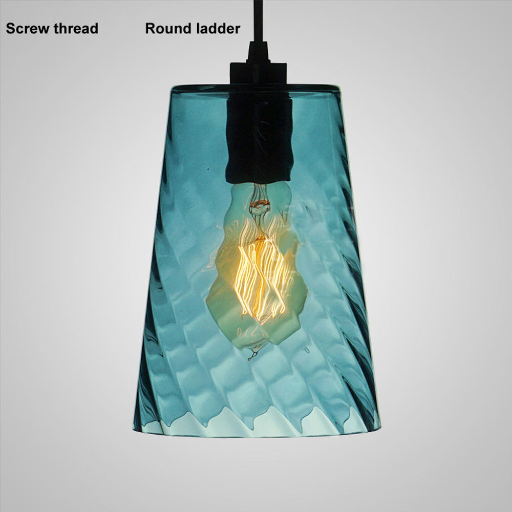 Enhance your dining area or living space with this modern handmade blue glass hanging lamp chandelier, a perfect blend of craftsmanship and contemporary style. Designed with a unique screw-thread glass pattern, this pendant light delivers both functionality and artistic charm, making it an ideal choice for dining rooms, kitchens, bedrooms, or lounge areas.