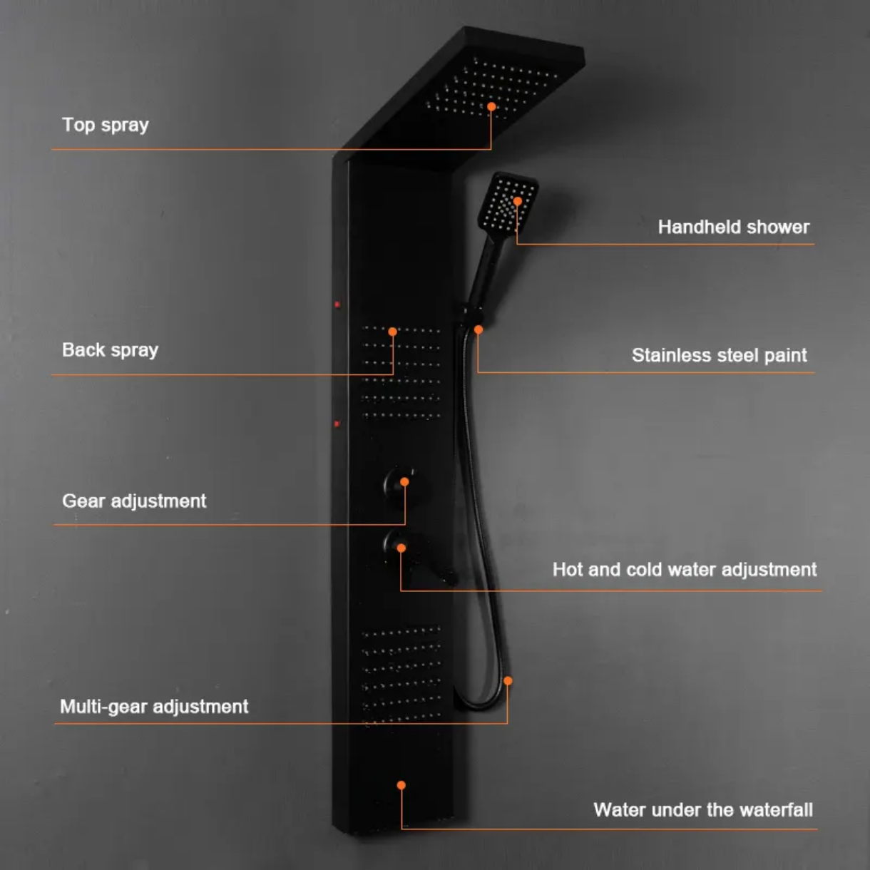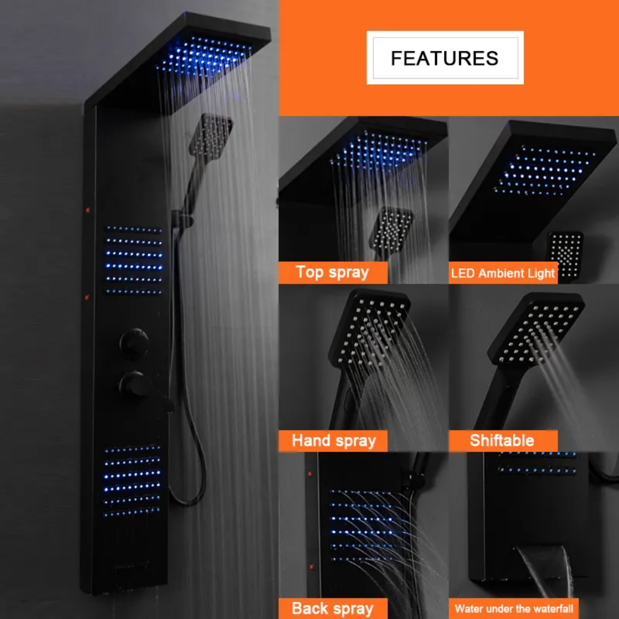 Black Shower Panel with Led Lights with Massage Stainless Steel 304