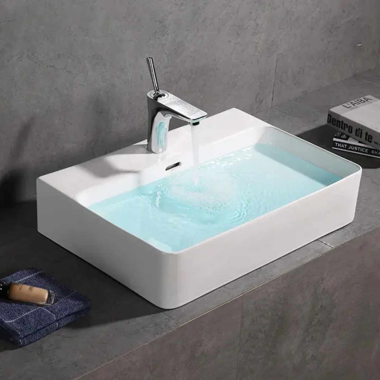 High Quality Table Top Hand Wash Sink Lavabo Rectangular Bathroom Sink Bowl White Ceramic Countertop Wash Basin