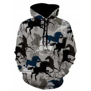 Mens Pullover Hooded Sweater Jacket Printed Horse Carriage Pattern Pullover Hoodie