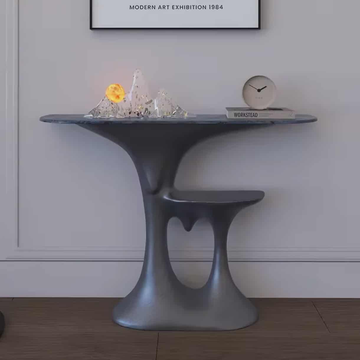 Modern Artistic Fiberglass Grey Console Table with Sculptural Design