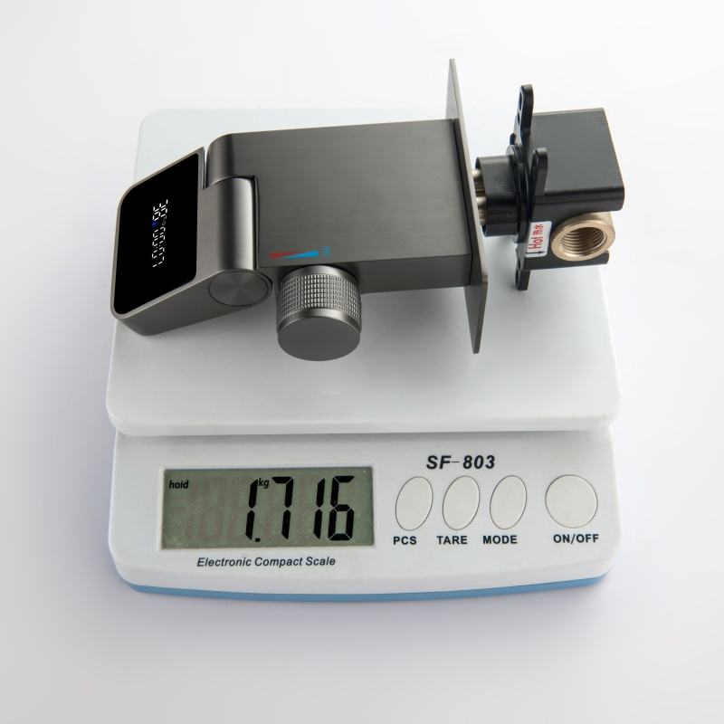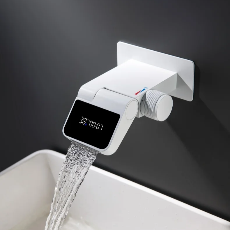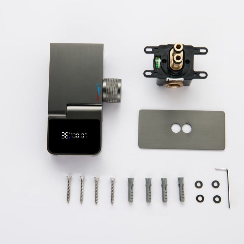 Upgrade your bathroom with this modern wall-mount dual hole gun gray basin faucet, designed to combine style, functionality, and precision. Featuring a sleek digital display, this waterfall faucet allows you to easily monitor water temperature, ensuring a safe and comfortable experience for every use. The dual hole design is perfect for contemporary bathroom sinks, providing a clean, minimalist aesthetic. Crafted from high-quality brass, this faucet is built for long-lasting durability, corrosion resistance, and reliable performance. Ideal for modern homes, hotels, or luxury bathroom renovations, it delivers both elegance and practical functionality.