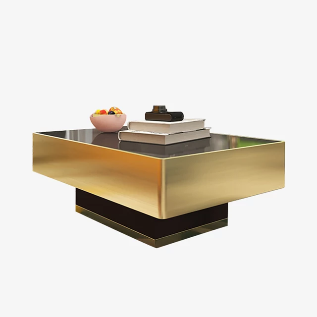Deluxe Stainless steel furniture living room glass table square coffee table sets