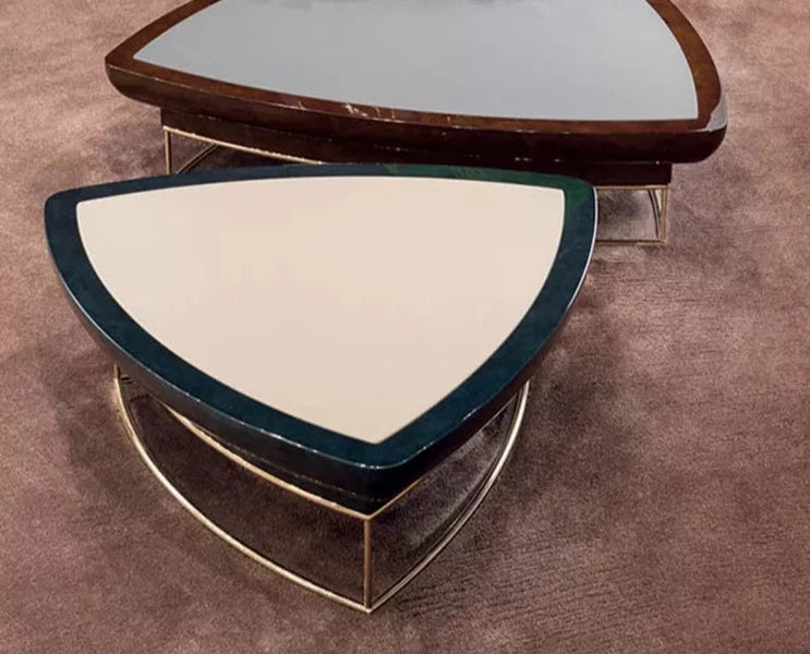 Fancy french oak wood coffee table brand new designs triangle shape solid wooden coffee table
