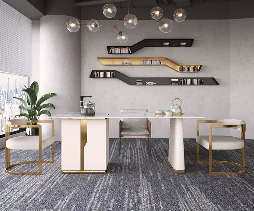 Gold Stainless Steel Accent Chair PU Leather Upholster Dining Chair