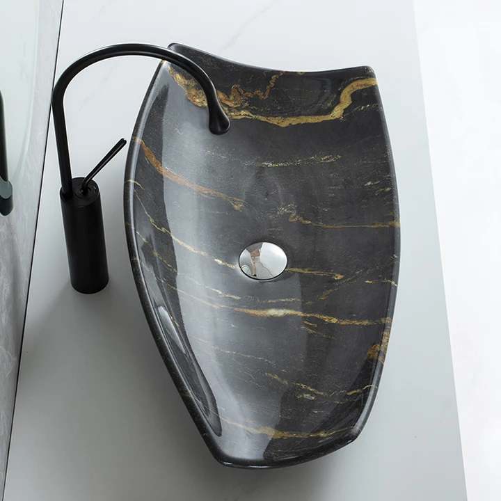 Crafted from premium porcelain, the basin features a smooth, glossy black finish that is both elegant and durable. Its irregular form adds a touch of modern creativity, while the vessel-style installation makes it perfect for vanities in homes, hotels, villas, and upscale commercial spaces.