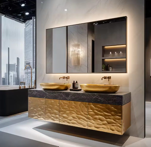 Luxury Modern Gold Double Sink Bathroom Vanity Cabinet Set | Elegant Bathroom Vanity Furniture with Storage