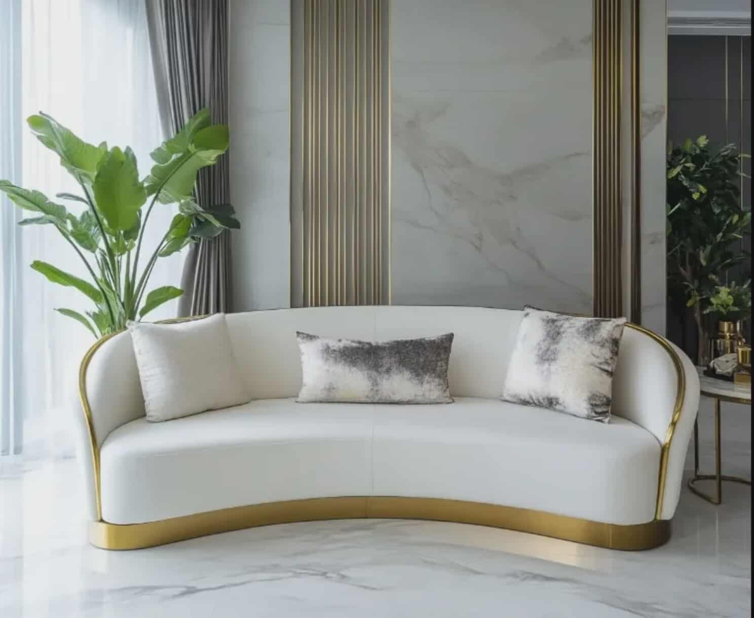 Modern 3 Seater White Gold Sofa Couch Minimalist Leather or Linen Customize Living Room