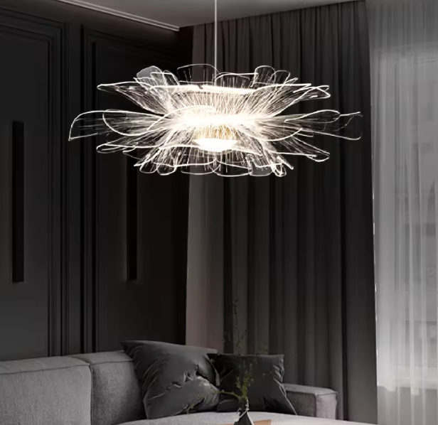 Bring sophistication and warmth to your home with this luxury acrylic flower chandelier, a statement ceiling light for modern interiors.