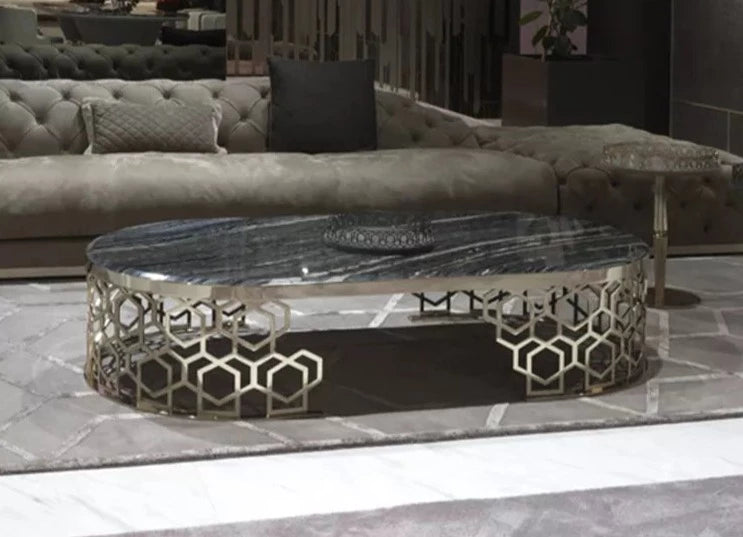 Modern Gold Stainless Steel Leg marble top oval tea table living room home furniture luxury side center coffee table