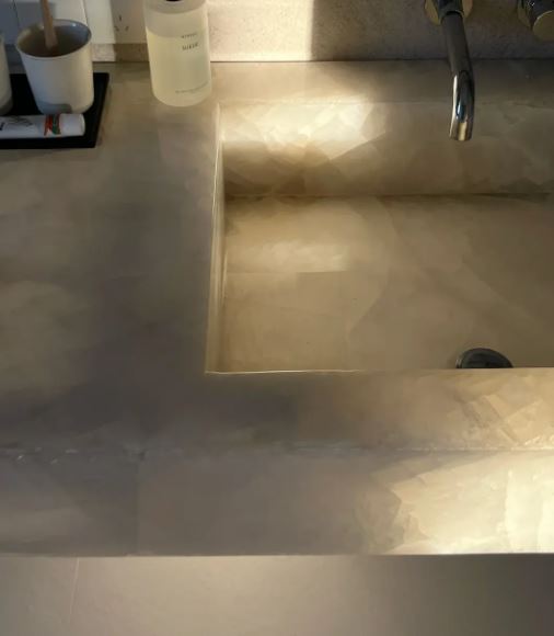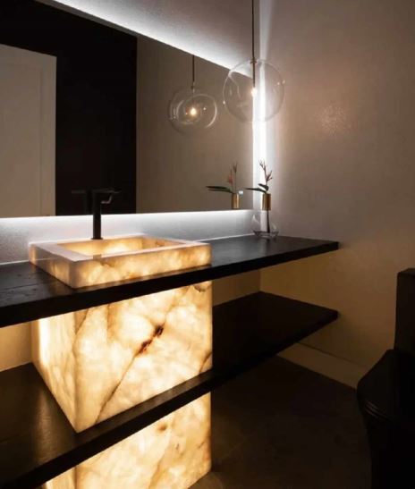 Modern Luxury Onyx Stone Basin Sink Translucent Natural Polished Big slab for Villa Hotel New Popular Indoor Island Desk