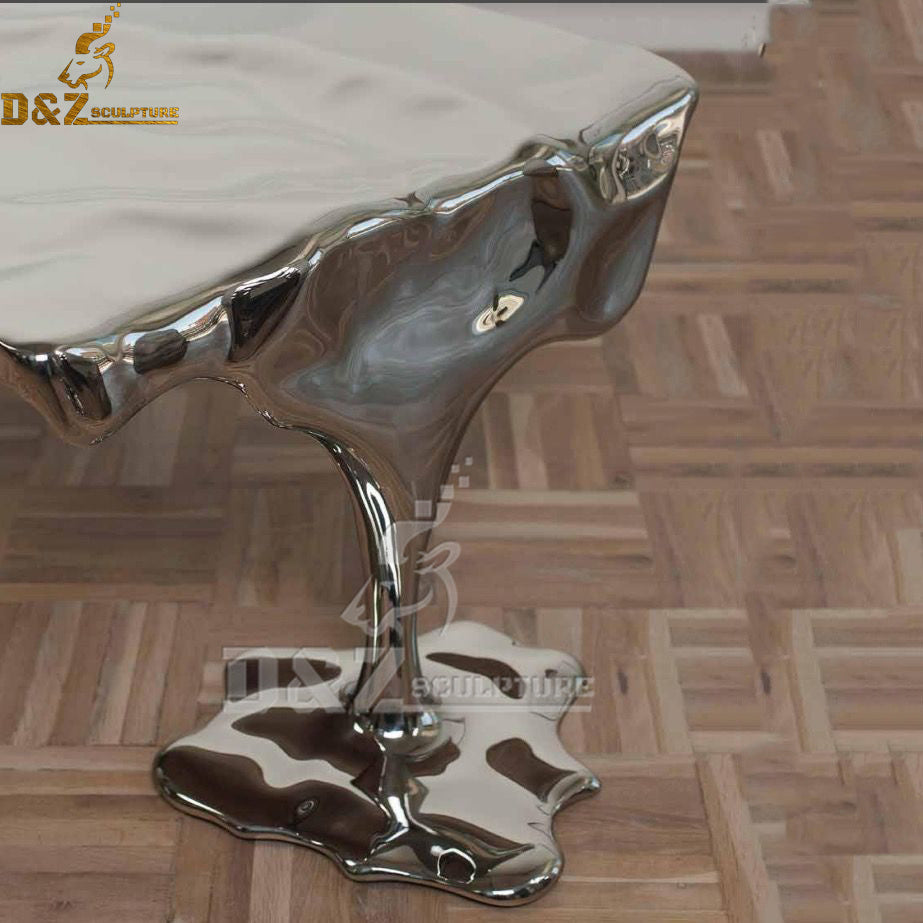Modern Mirror Finishing Water Wave Surface Stainless Steel Art Coffee Table Sculpture