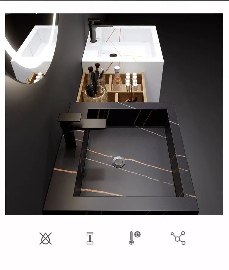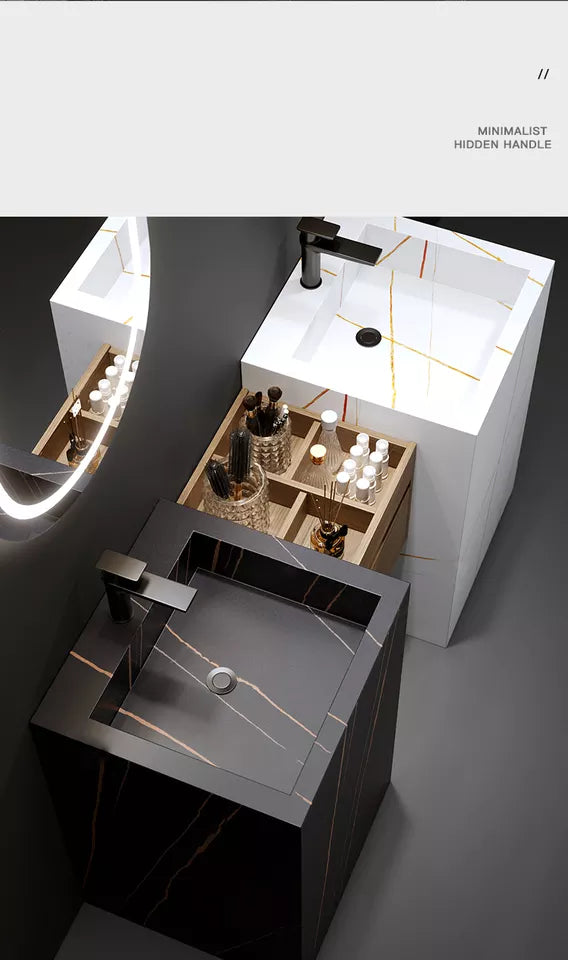 Modern Simple Quartz Marble Sintered Stone Sink Vanities with Wood Organizer