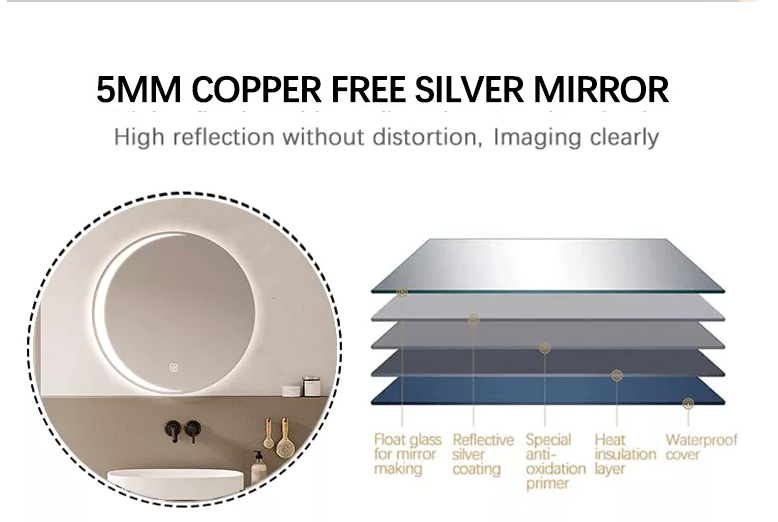 SIZE: 60CM diameter Thickness: 5mm Materials: Our led mirrors are 5mm copper-free silver mirrors. Read more