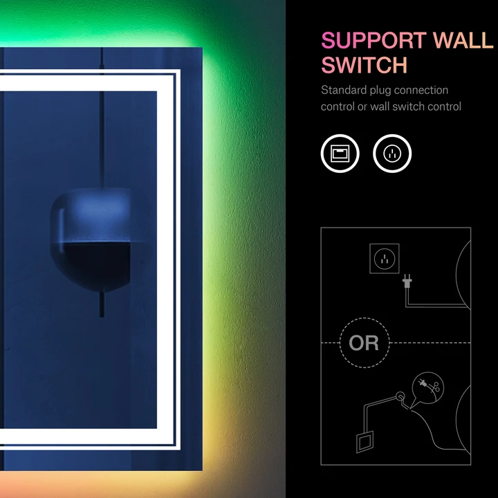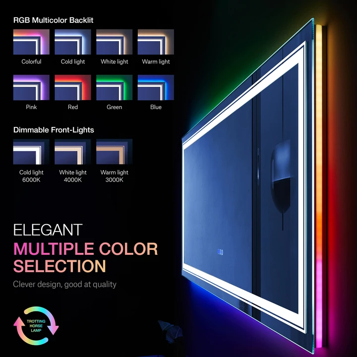 100x80cm RGB Led Light Mirror 8 Color Changing Lights