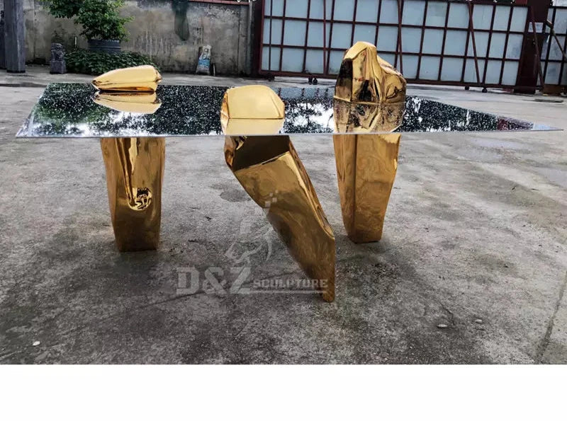 Luxury Dubai Design Stainless Steel Mirror Finish Metal Sculpture Coffee Table
