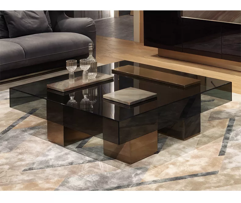 Product Name Coffee Table Materials: stainless steel plating gold + tempered glass countertops + marbling stickers Usage Scenarios :Homes Hotels Clubs... Read more