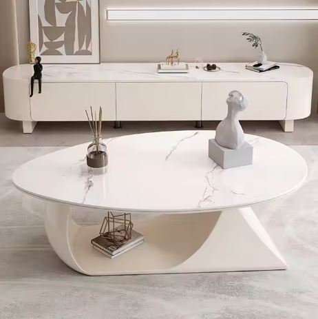 Cream Round Wood Color Shaped Coffee Table Small Apartment Living Room Oval Rock Panel Coffee Table