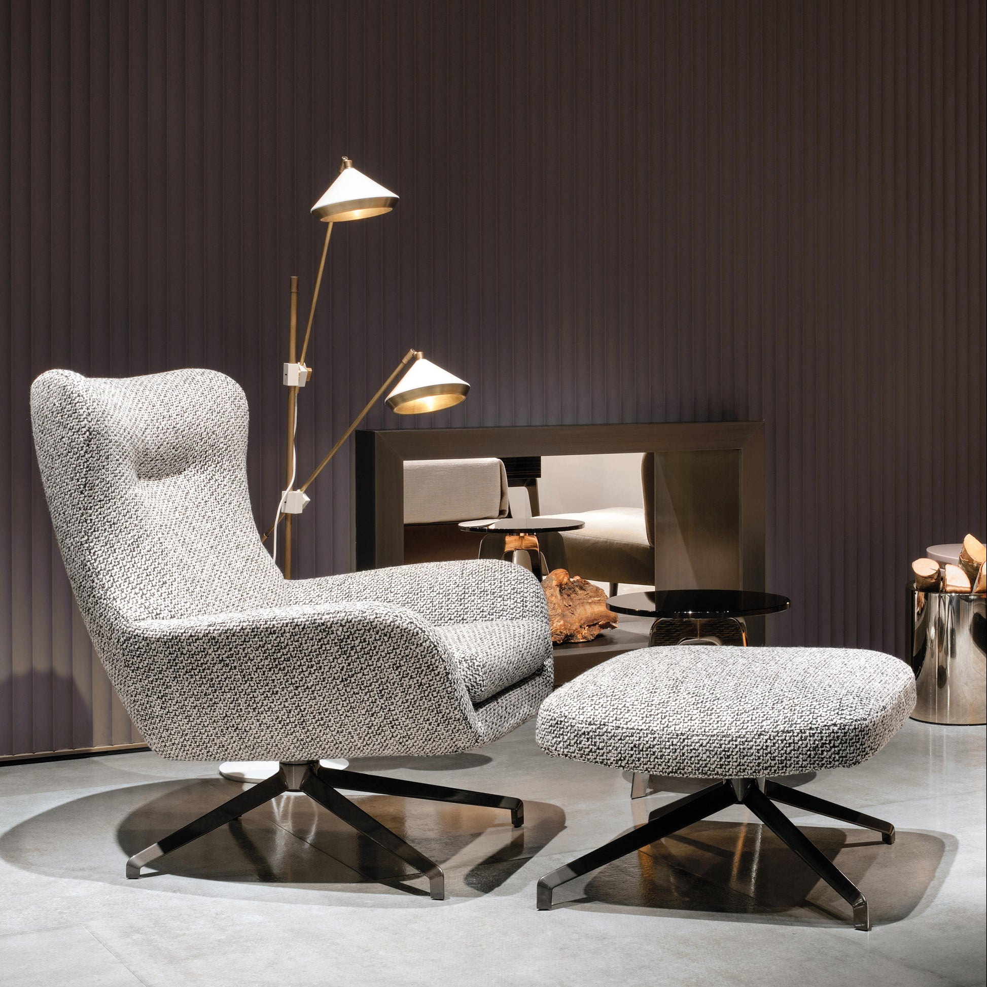 Fabric deck chair Rotatable sofa chairwith swivel footrest