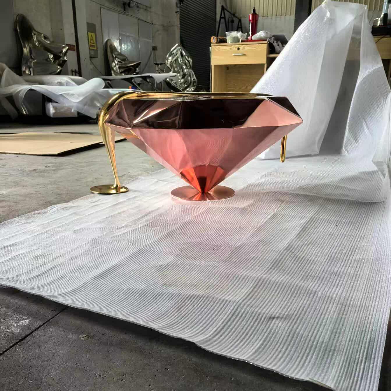 Luxury Diamond Shape Fiberglass Coffee Table – Modern Center Table for Living Room, Lounge & Hotel Interiors