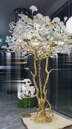Luxury Floor Lamp 100% Pure Real Copper Gold Body Made of Porcelain Leaves Luxury Italian Chandelier Art Decor