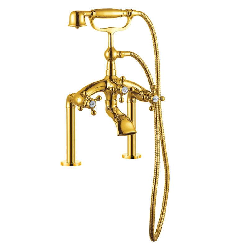 Luxury Floor Mounted gold plated 3 Handle bathtub Faucet