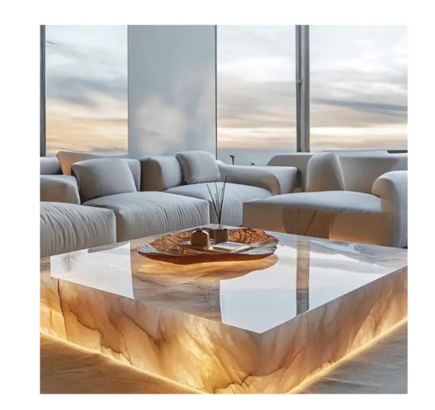 Luxury Indoor Glowing Marble Stone Onyx Coffee Table for Living Room Elegant Marble Furniture for Home Use